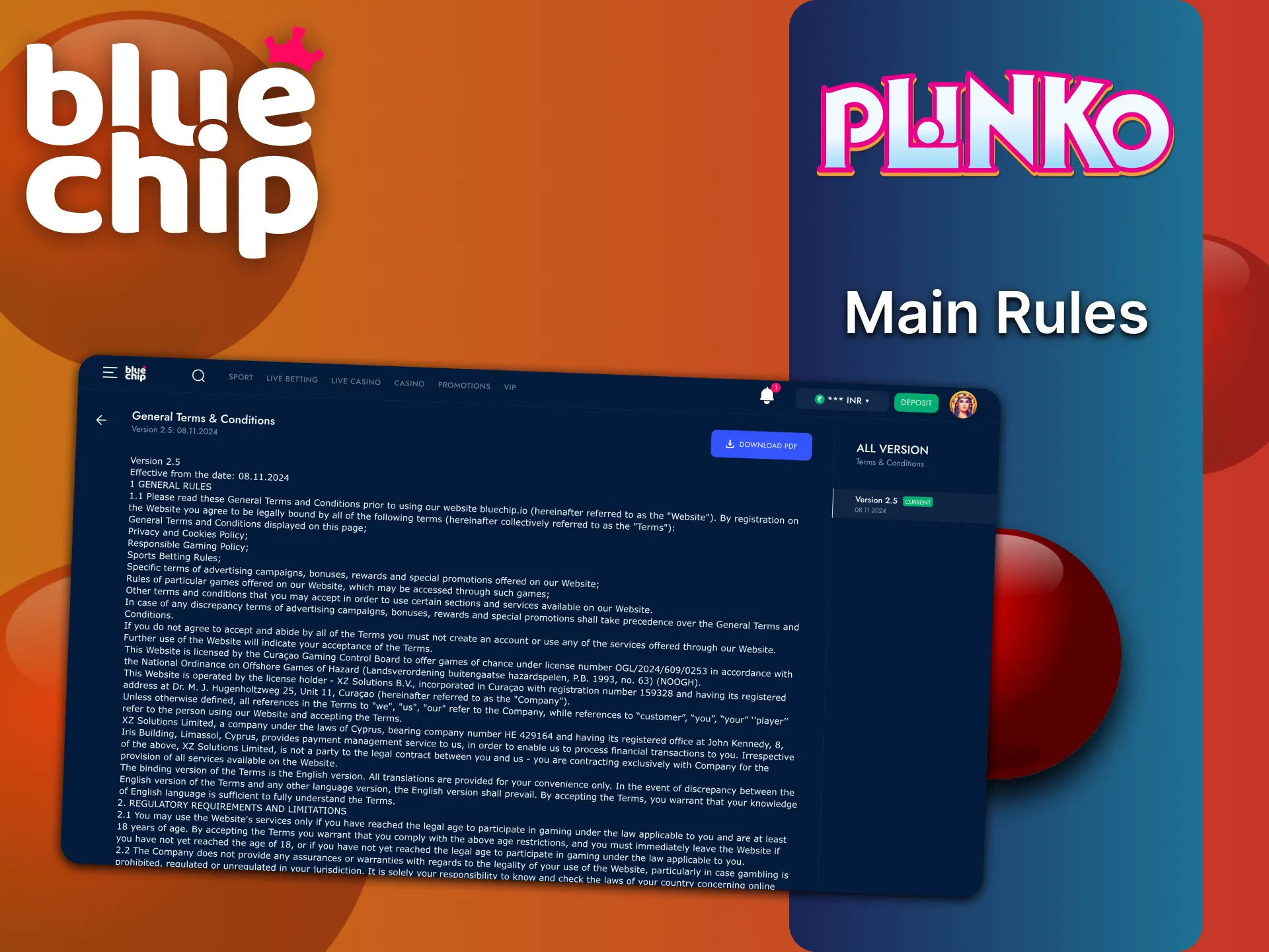 - कुराकाओ द्वारा लाइसेंस: Bluechip Plinko के पास कुराकाओ गेमिंग कंट्रोल बोर्ड से लाइसेंस नंबर OGL/2024/609/0253 है;