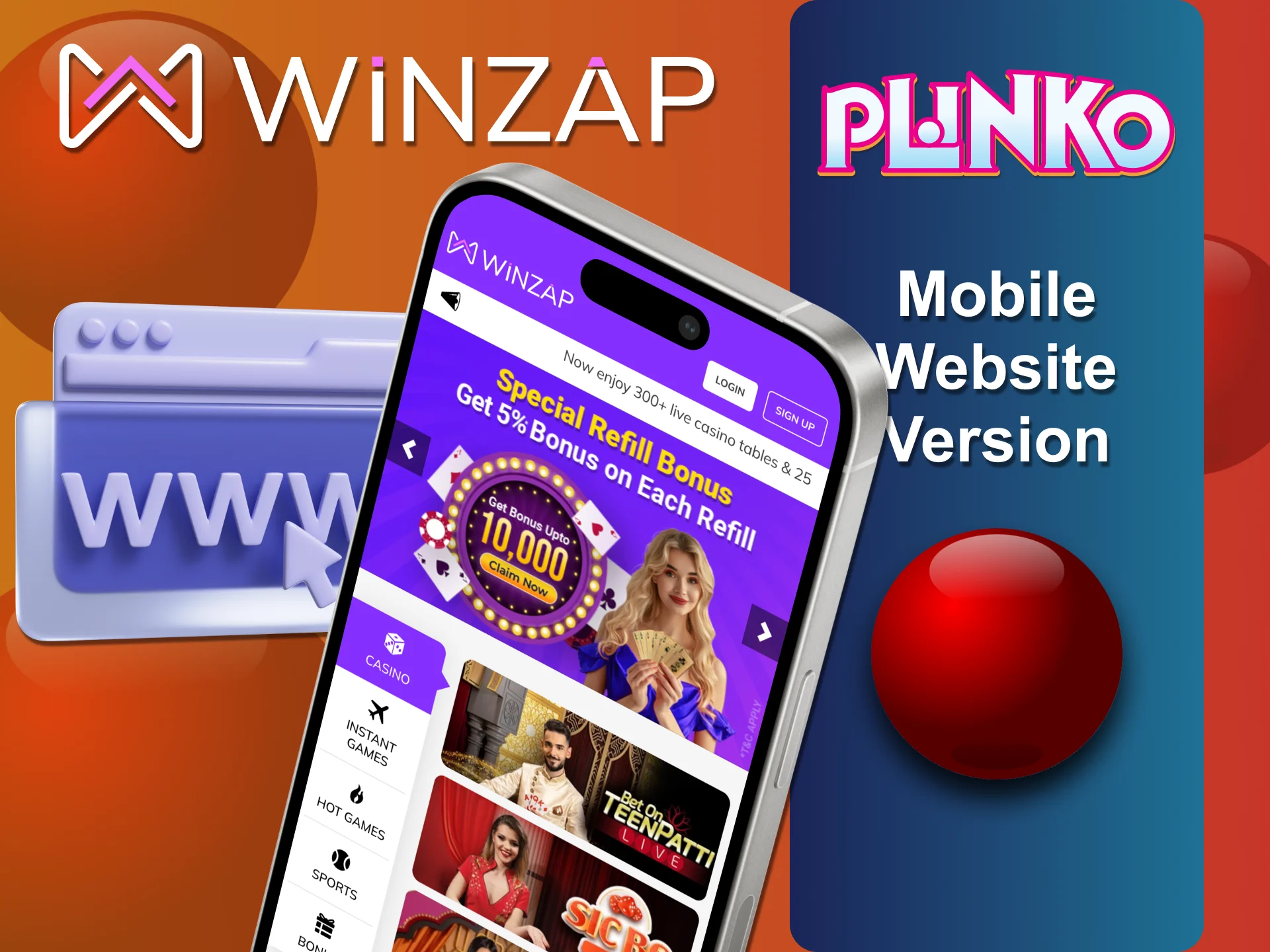 Plinko खेलने के लिए Winzap मोबाइल वेबसाइट संस्करण